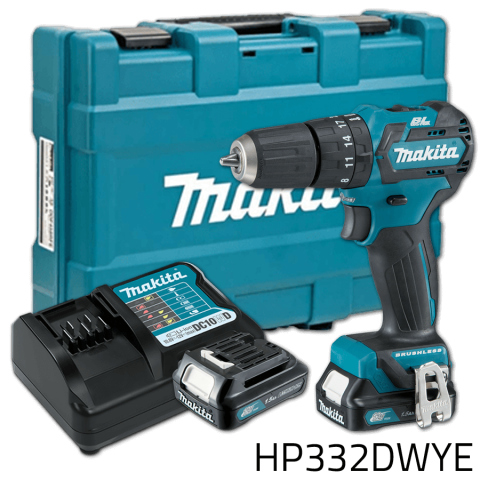 Makita 10mm (3/8″) 32 N·m (280 in.lbs.) Cordless Hammer Driver Drill 12Vmax CXT™ Li-Ion [Kit] HP332DWYE