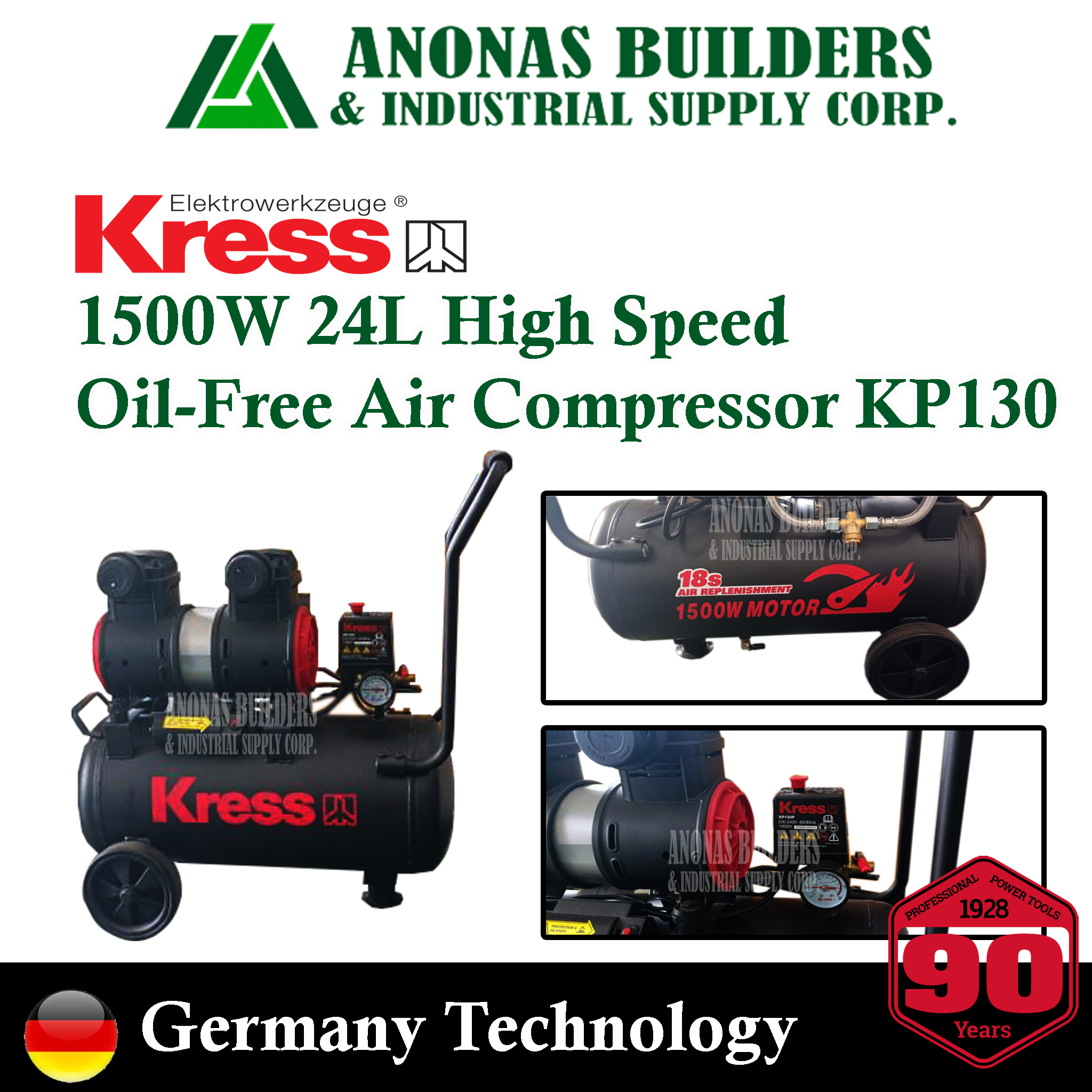 Input voltage: 220 V Input power: 1500 W Volume flowrate: 120 L/min Gas tank capacity: 24 L Working pressure: 0.7 MPa Rated Speed: 2800 rpm Max Tank pressure: 3 MPa