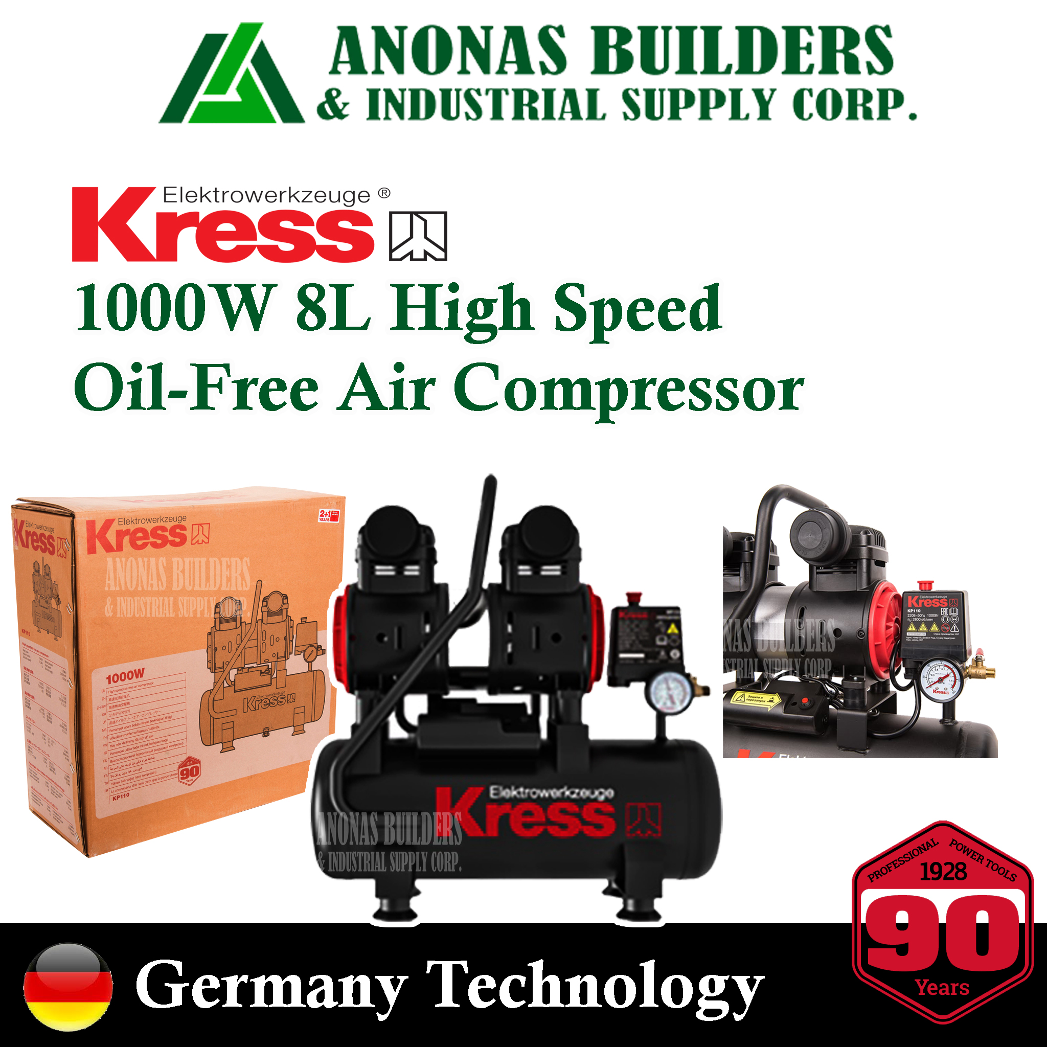 Home/Industrial Equipment/Air Compressors/Kress 1000Watts 8L High Speed Oil-Free Air Compressor KP110